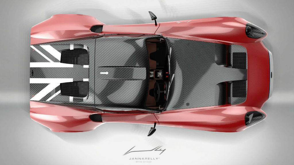 Η μάσκα βρίσκεται πολύ χαμηλά, ενώ τα φωτιστικά σώματα, μαζί με τα δύο μεγάλα ανοίγματα στο καπό δίνουν μια μορφή διαφορετική στο σπορ μοντέλο. Στο πίσω μέρος διακρίνεται το λογότυπο Jannarelly, τα στρογγυλά φωτιστικά σώματα και η διπλή απόληξη της εξάτμισης. Το αυστηρά διθέσιο μοντέλο ξεχωρίζει από μέρος της αγγλικής σημαίας τόσο στα πλαϊνά, όσο και πίσω από τις θέσεις των οδηγού και συνοδηγού.