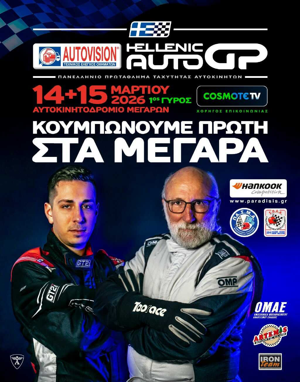 Η αγωνιστική σεζόν του 2026 ανοίγει στις 14 και 15 Μαρτίου στο Αυτοκινητοδρόμιο Μεγάρων, με το Autovision Hellenic Auto GP σε ένα διήμερο γεμάτο ταχύτητα και θέαμα. Μετά την επιτυχημένη επανεκκίνηση του Πρωταθλήματος Ταχύτητας το 2025, το Autovision Hellenic Auto GP επιστρέφει ακόμη πιο δυναμικά, με ένα πλούσιο αγωνιστικό διήμερο στο Αυτοκινητοδρόμιο Μεγάρων. Που πέρα από τις “κλασικές” κατηγορίες αυτοκινήτων, θα περιλαμβάνει τον πρώτο αγώνα του Πανελληνίου Πρωταθλήματος Crosscar, αλλά και τον αγώνα Regularity Ιστορικών αυτοκινήτων “Artemis Classic Circuit Cup”.