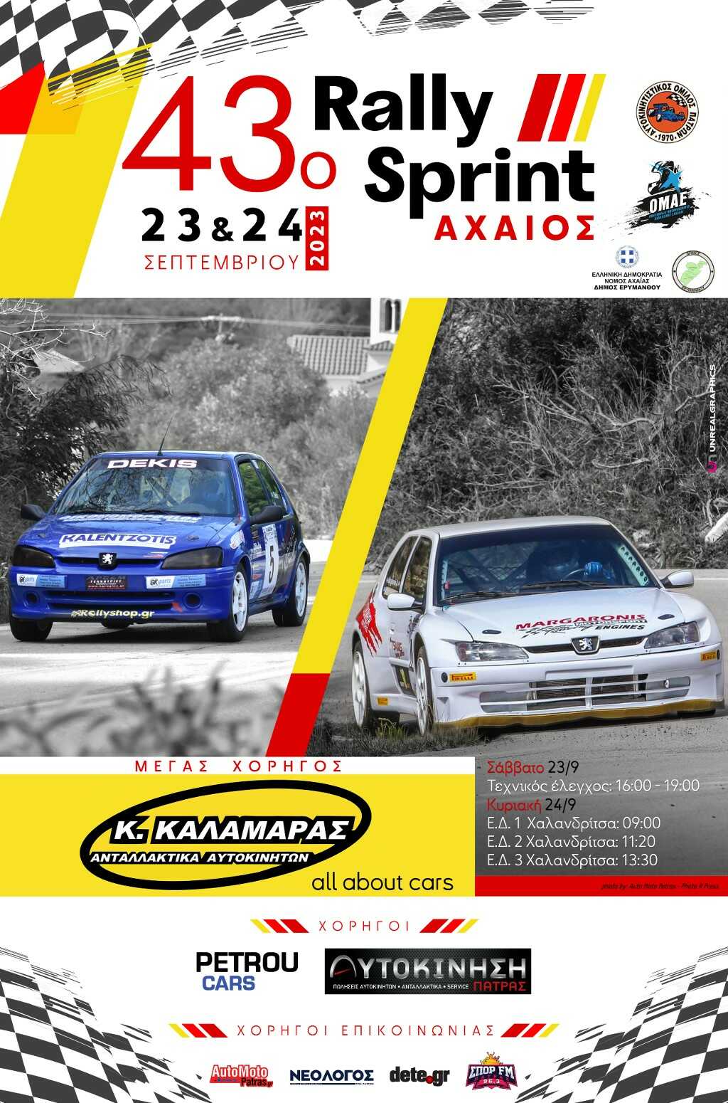Το Σάββατο και την Κυριακή 23-24 Σεπτεμβρίου 2023 ο Αυτοκινητιστικός Όμιλος Πατρών διοργανώνει τον αγώνα “43ο Rally Αχαιός”, που προσμετρά στο Κύπελο Rally Ασφάλτου Νοτίου Ελλάδας και Πρωτάθλημα Ασφάλτου Ιστορικών Αυτοκινήτων. Μικρές αλλαγές από την αρχική διαδρομή ανακοινώνει η Οργανωτική Επιτροπή του αγώνα, εργασίες στο οδόστρωμα που θα έπρεπε να έχουν ολοκληρωθεί και δυστυχώς δεν ολοκληρώθηκαν, μας αναγκάζουν στην απόφαση της τελευταίας στιγμής.