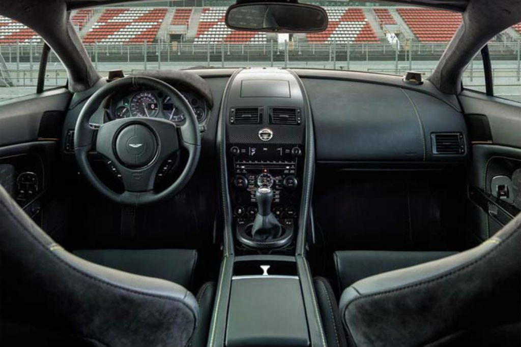 Εσωτερικά, πάρα πολλά τμήματα έχουν προσαρμοστεί από τη Mercedes, με την κεντρική κονσόλα να έχει λάβει ένα περίεργο οβάλ σχήμα. Η διάταξη του καθίσματος είναι αρκετά χαμηλωμένη, όμως ο σχεδιασμός είναι σίγουρο ότι θα εκπλήξει τον οδηγό. Τα δερμάτινα καθίσματα διαθέτουν στο προσκέφαλο ραμμένο το λογότυπο της Aston Martin. Επιπλέον, το εσωτερικό γίνεται πιο άνετο, αφού υπάρχει μεγαλύτερος χώρος για τα πόδια των επιβατών.