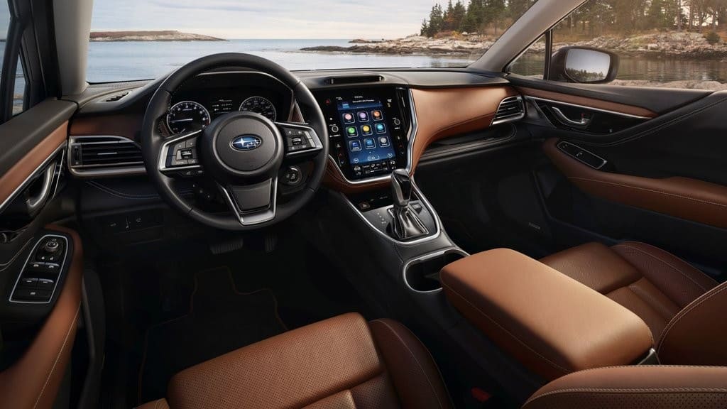 Μπαίνοντας στο εσωτερικό διακρίνουμε την κάθετη οθόνη αφής μεγέθους 11,6”, με το σύστημα ενημέρωσης και ψυχαγωγίας. Ο πίνακας οργάνων παραμένει με το κλασσικό στροφόμετρο και ταχύμετρο, με τις λευκές βελόνες, ενώ αναμεσά τους υπάρχει μια μικρή ψηφιακή οθόνη που δίνει τις πληροφορίες που απαιτούνται. Η σύνδεση με τα smartphone γίνεται παιχνίδι με τα συστήματα Apple CarPlay και Android Auto, ενώ υπάρχει και μια κάμερα αναγνώρισης προσώπου της Subaru για να ρυθμίζεται αυτόματα η θέση του οδηγού, οι καθρέπτες και ο κλιματισμός.