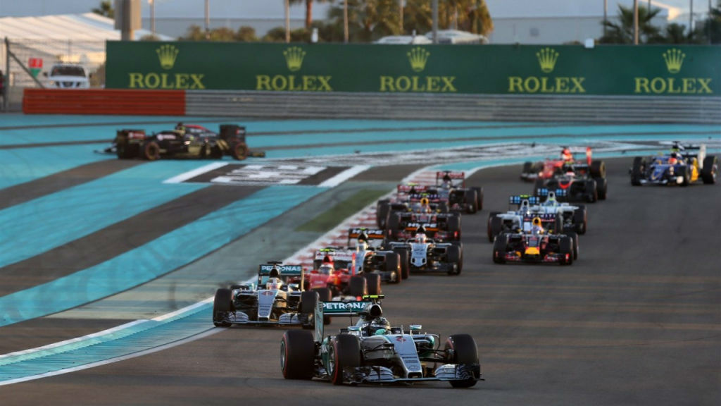 Το 19ο και τελευταίο Grand Prix της χρονιάς έγινε στο Abu Dhabi με τη νύχτα να παίρνει τη θέση της ημέρας και το Nico Rosberg να κάνει την τρίτη συνεχόμενη νίκη, αφήνοντας όμως μια πικρή γεύση στο Γερμανό πιλότο, αφού το Παγκόσμιο Πρωτάθλημα το κέρδισε άξια ο Lewis Hamilton. Στα αξιοσημείωτα η χειραψία των δύο πιλότων της Mercedes μετά το τέλος του αγώνα. Στη δεύτερη θέση ήταν ο Βρετανός, ενώ το βάθρο ολοκλήρωσε ο Kimi Raikkonen, ο οποίος το είδε για τρίτη φορά φέτος.