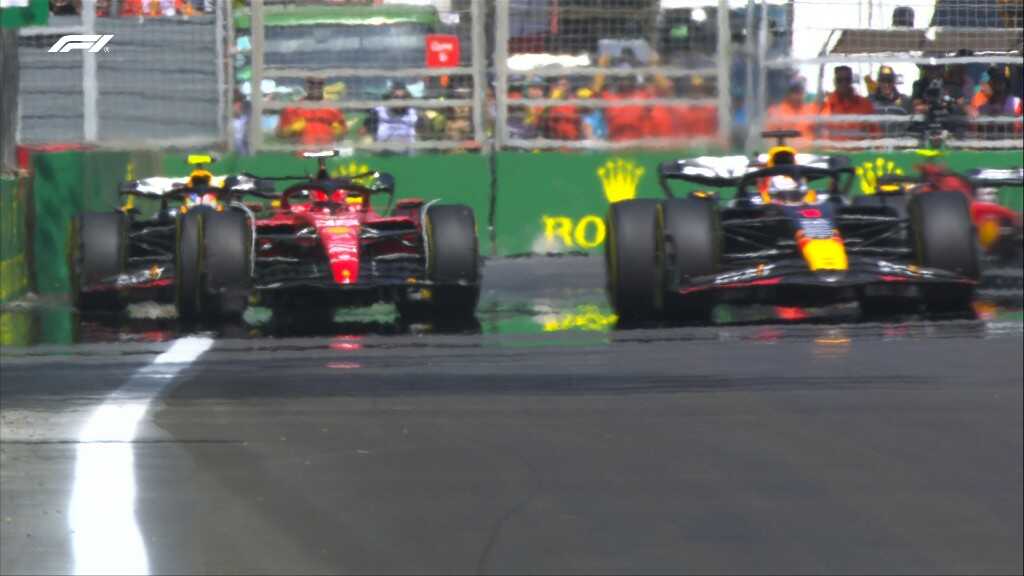 Σβήνοντας τα 5 κόκκινα φώτα στην κορυφή δεν είχαμε καμία αλλαγή με τον Leclerc να μένει στην κορυφή και τους Verstappen-Perez να ακολουθούν. Πιο πίσω ο Stroll πέρασε τον Norris, ενώ ο Albon είχε μια μικρή επαφή με τον Piastri. Στον 4ο γύρο η πίεση του Verstappen έφερε αποτέλεσμα, αφού πέρασε τον Leclerc και ανέβηκε στην κορυφή. Στον 6ο γύρο το ίδιο έκανε και ο Perez, αφού πέρασε και αυτός τον Leclerc ανεβαίνοντας στη δεύτερη θέση. Στον 10ο γύρο ο Hamilton μπήκε στα pit όπως και ο Norris, ενώ ο Alonso ανέβηκε στην τέταρτη θέση.