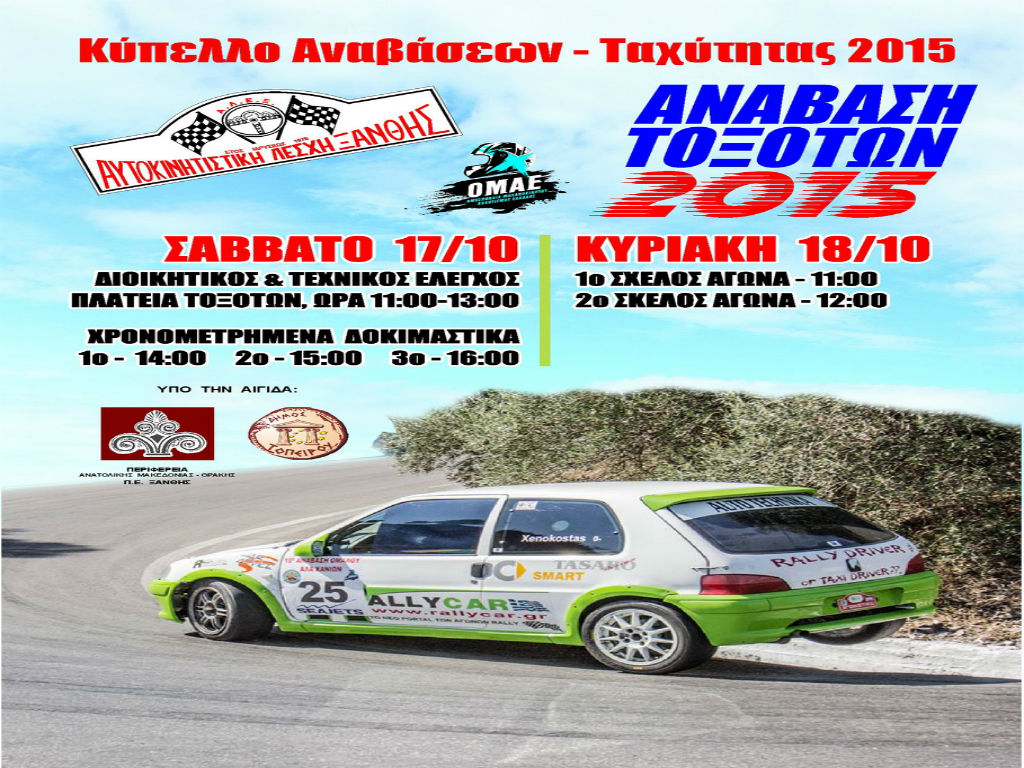 Σήμερα και αύριο στη Ξάνθη θα διεξαχθεί η Ανάβαση Τοξοτών 2015 με συνολικά 20 αγωνιζόμενους να διεκδικούν τον καλύτερο χρόνο. Ο αγώνας προσμετρά στο Κύπελλο Αναβάσεων και Ταχύτητας Βορείου Ελλάδος, ενώ η συνολική απόσταση είναι 3,2 χιλιόμετρα, με την υψομετρική διαφορά μεταξύ εκκίνησης και τερματισμού να είναι 273,5 μέτρα. Τα δοκιμαστικά του Σαββάτου θα ξεκινήσουν στις 17:00 το απόγευμα, ενώ ο αγώνας είναι προγραμματισμένος για το πρωί της Κυριακής στις 11:00.