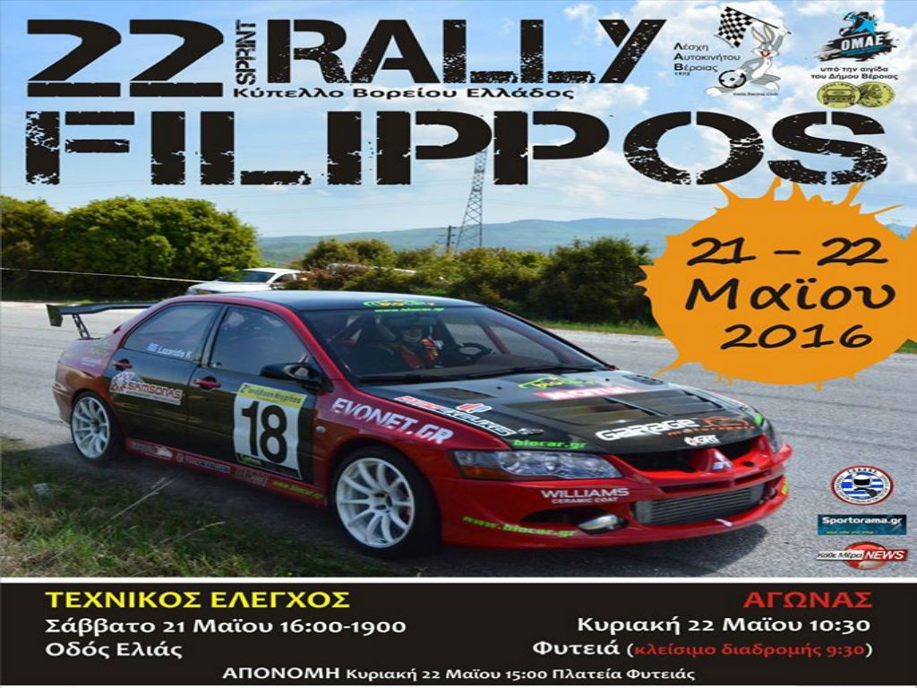 Η Λέσχη Αυτοκινήτου Βέροιας διοργανώνει το Σαββατοκύριακο 21 και 22 Μαΐου το 22ο Rally Sprint Φίλιππος. Το συνολικό μήκος του Rally θα είναι 42,3 χιλιόμετρα και θα γίνει στην Ειδική Διαδρομή Κουστοχώρι και τα πληρώματα που θα διεκδικήσουν τη νίκη έφτασαν τα 20.