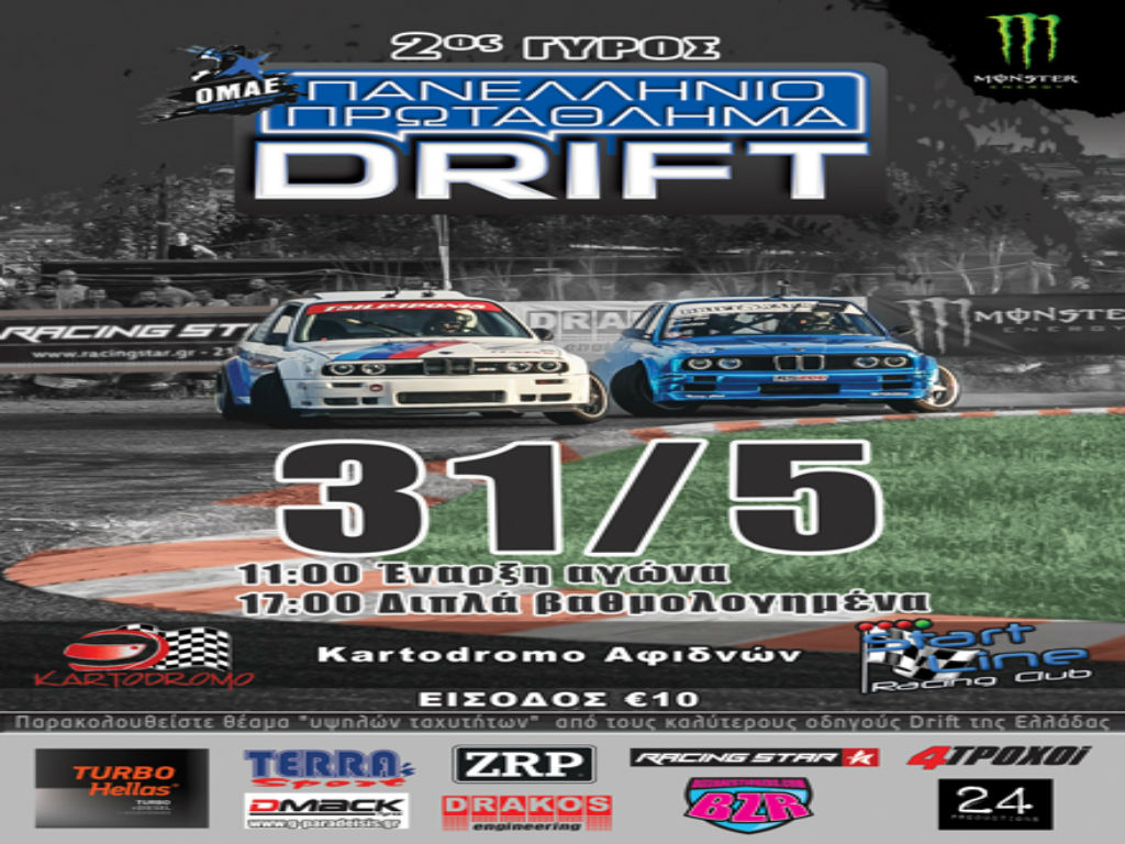 Το Σαββατοκύριακο 30 και 31 Μαΐου στην πίστα των Αφιδνών θα διεξαχθεί ο δεύτερος αγώνας για το Πανελλήνιο Πρωτάθλημα Drift. Ο αγώνας ήταν προγραμματισμένος να γίνει στην πίστα των Μεγάρων, αλλά μετά την άρνηση των ιθυνόντων βρέθηκε η πίστα KARTODROMO στις Αφίδνες. Τη διοργάνωση του αγώνα έχει αναλάβει το Αθλητικό Σωματείο START LINE.