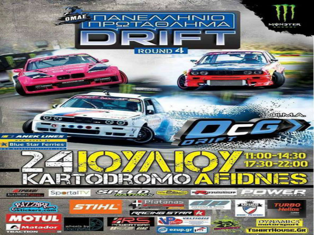Το Σαββατοκύριακο 23 και 24 Ιουλίου διεξάγεται στην πίστα καρτ Αφιδνών “Kartodromo” ο τέταρτος γύρος του Πανελλήνιου Πρωταθλήματος Drift. Συνολικά 47 οδηγοί θα συμμετέχουν στον αγώνα δεξιοτεχνίας προσφέροντας πλούσιο θέαμα σε όσους το παρακολουθήσουν από κοντά.