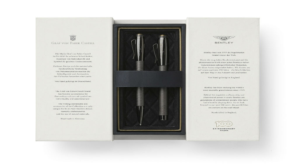 Η Bentley έχει το δικό της τρόπο να καλομαθαίνει αυτούς που αγαπούν τα αυτοκίνητα της. Όμως εκτός από τα ακριβά αυτοκίνητα δημιούργησε και μια επετειακή σειρά από ακριβά αξεσουάρ γραφείου. Συμπληρώνοντας τα 100 χρόνια ζωής οι Βρετανοί δημιούργησαν δύο στυλό και μια πένα, αλλά και ένα βιβλίο.