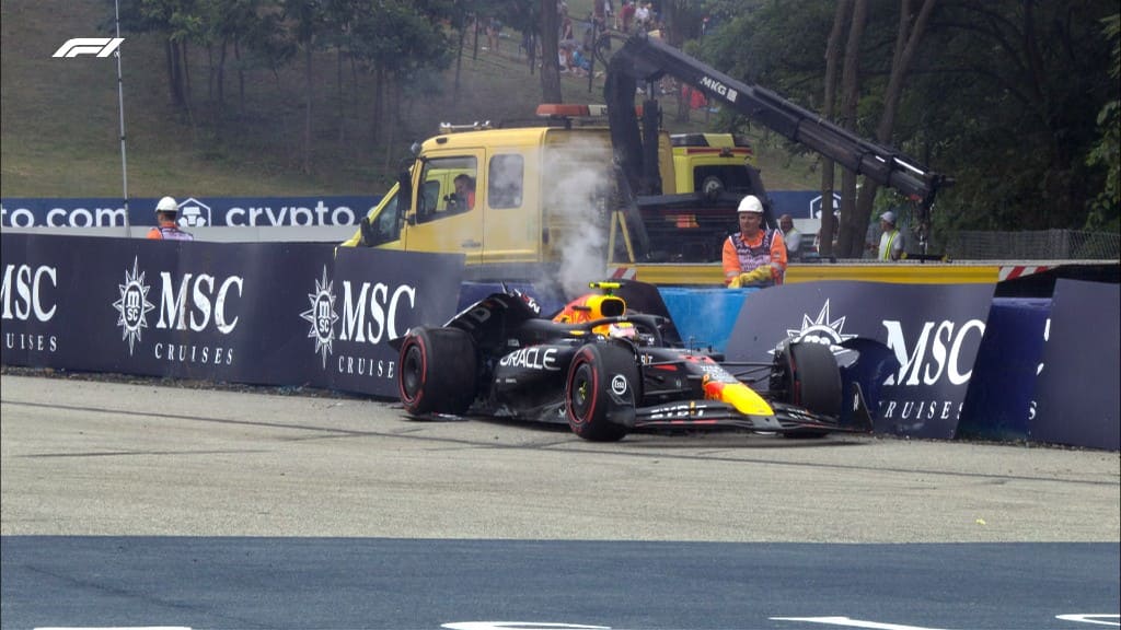 Στο Q1 ο Sargeant είχε μια έξοδο ευτυχώς χωρίς προβλήματα συνεχίζοντας τη διαδικασία. Ο Sergio Perez όμως 6:45” πριν την ολοκλήρωση της διαδικασίας βγήκε εκτός πίστας με το μονοθέσιο να παθαίνει ζημιά εγκαταλείποντας κάθε προσπάθεια για να συνεχίσει. Έτσι είχαμε κόκκινη σημαία. Μετά από περίπου 12’ η διαδικασία συνεχίστηκε. Εκείνη την ώρα στην κορυφή ήταν ο Hamilton και ακολουθούσαν οι Sainz και Verstappen. Τελικά ταχύτερος ήταν ο Ricciardo, για να ακολουθήσουν οι Hamilton, Verstappen, Sainz και Albon. Εκτός συνέχειας έμειναν οι Perez, Russell, Zhou, Ocon και Gasly.