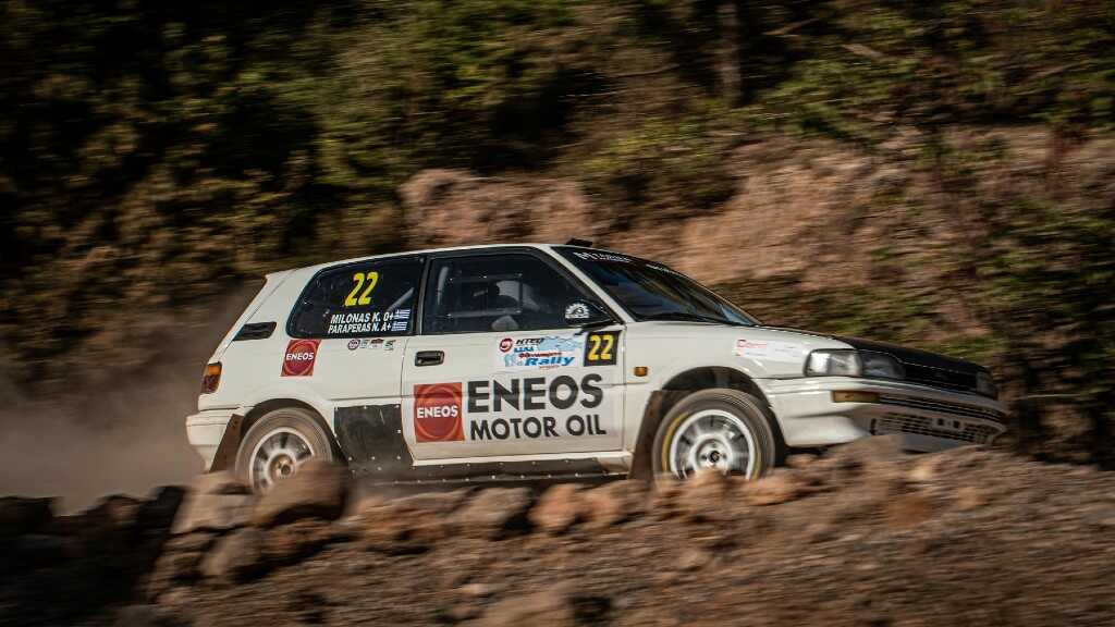 Οι πρωτοπόροι του πρώτου σκέλους, Κωνσταντίνος Μυλωνάς-Νίκος Παραπέρας (Toyota Corolla AE101) δεν κατάφεραν να αντισταθούν στην πίεση των νικητών και αρκέστηκαν στη δεύτερη θέση της F2 E, δίνοντας συνέχεια στο επιτυχημένο σερί τερματισμών που έχουν ξεκινήσει από το 2021. Τρίτοι στην κατηγορία ολοκλήρωσαν οι Αριστείδης Μαυραγάνης-Ιορδάνης Τσελεπίδης με Toyota Corolla AE92.