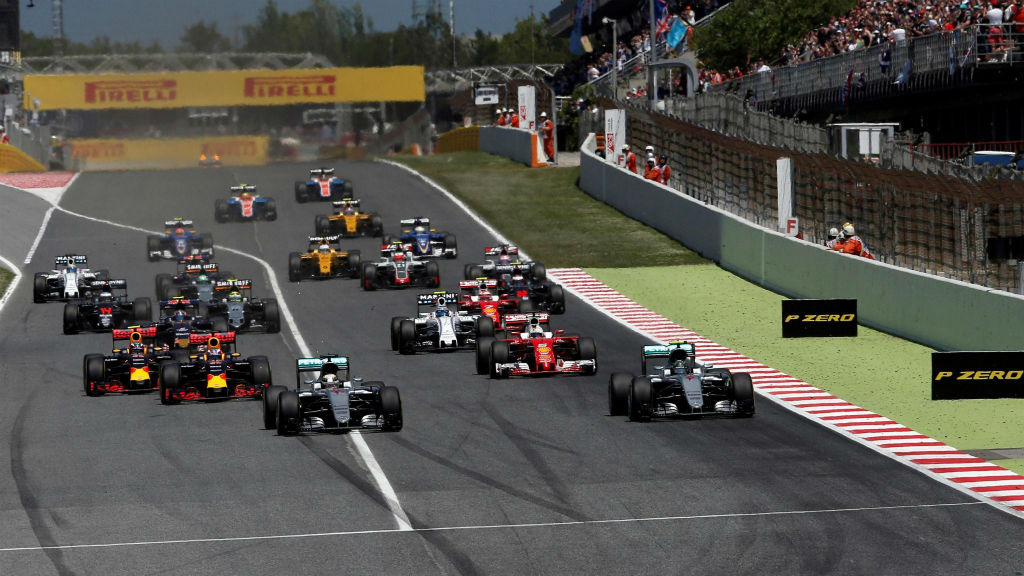Σβήνοντας τα 5 κόκκινα φώτα ο Hamilton ξεκινώντας από την pole position, έδειξε πως ήθελε τη νίκη στην Ισπανία, όμως τα πράγματα ξαφνικά άλλαξαν με τον Rosberg να βρίσκεται μπροστά και εκεί κάπου στην προσπάθεια του να ξαναπεράσει ο Βρετανός να χάνει το μονοθέσιο ακουμπώντας στο χορτάρι και παίρνοντας μαζί του στην αμμοπαγίδα το Γερμανό. Αποτέλεσμα ήταν η εγκατάλειψη και τον δύο με το αυτοκίνητο ασφαλείας να κάνει την εμφάνιση του. Φεύγοντας το αυτοκίνητο ασφαλείας από την πίστα στην κορυφή ήταν οι Ricciardo, Verstappen, Vettel και Raikkonen.