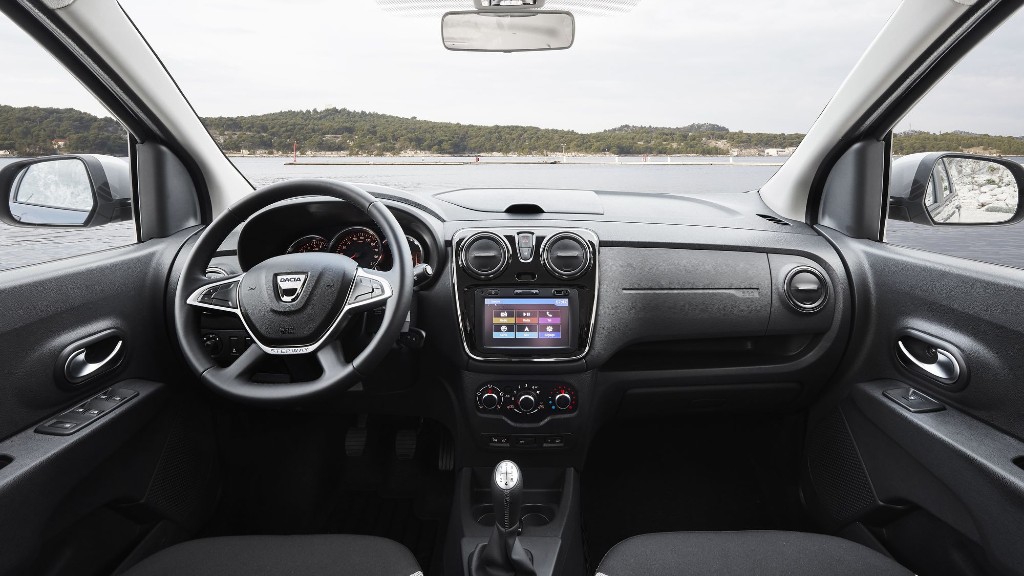 Το εσωτερικό του Lodgy Stepway αξιοποιεί όλα τα στοιχεία που οι αγοραστές προτιμούν αλλά και αναμένουν από ένα μοντέλο Dacia. Τα ταμπλό είναι εργονομικό και κατασκευασμένο από ανθεκτικά υλικά, που καθαρίζονται εύκολα. Ο πίνακας οργάνων είναι πλήρης και ευανάγνωστος, ενώ οι αεραγωγοί του κλιματισμού αποδεικνύονται εξαιρετικά εύχρηστοι και ρυθμίσιμοι προς κάθε κατεύθυνση. Στο κέντρο του ταμπλό δεσπόζει η ευκρινής οθόνη αφής 7 ιντσών του συστήματος πολυμέσων Media Nav Evo.