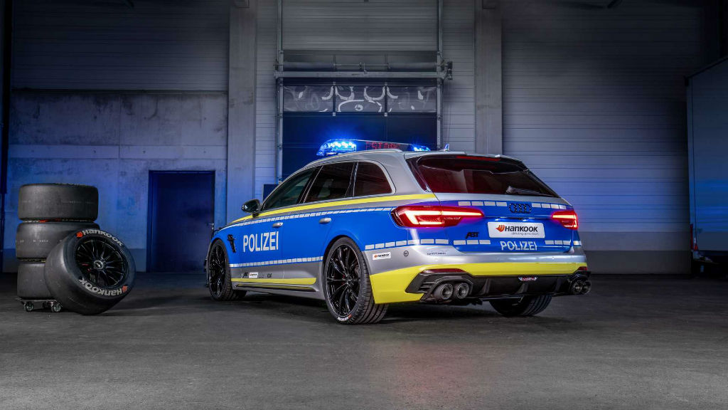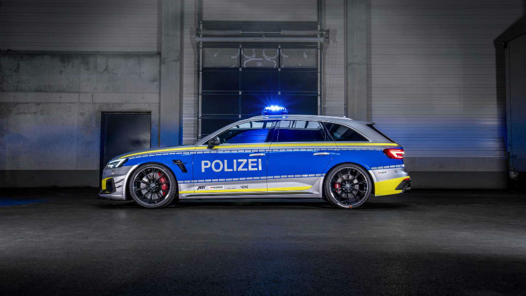 Το Audi RS 4 Avant είναι ένα από τα αυτοκίνητα που δε θα ήθελες να σε πλησιάσει, πόσο μάλλον όταν είναι και σε περιπολικό. Η ABT έπιασε για στα χέρια της το Audi RS 4 Avant και το εξόπλισε κατάλληλα για την γερμανική αστυνομία όπως της ζητήθηκε. Ο Γερμανικός οίκος βελτιώσεων εκτός ότι το διαμόρφωσε όπως έπρεπε το δυνάμωσε λίγο παραπάνω, έτσι ώστε να μην ξεφεύγει κανείς από την τσιμπίδα του νόμου.