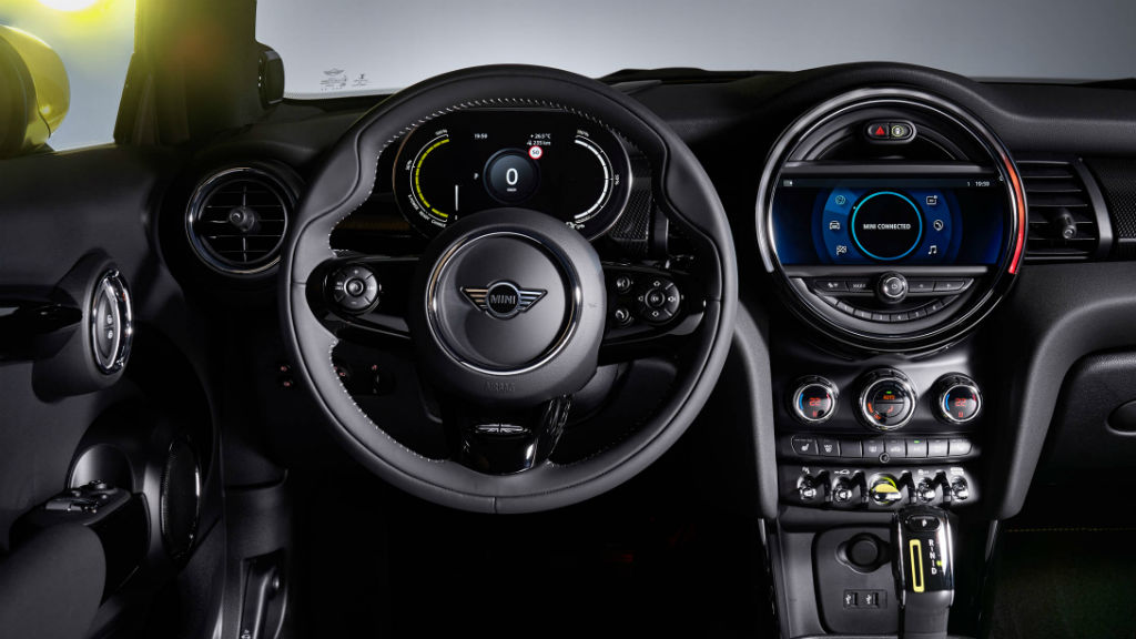 Στο εσωτερικό το νέο MINI Cooper SE ξεχωρίζει από τα δερμάτινα καθίσματα και το τριάκτινο τιμόνι με τα χειριστήρια. Το ψηφιακό ταχύμετρο και η οθόνη αφής με το σύστημα ενημέρωσης και ψυχαγωγίας και το σύστημα πλοήγησης προσφέρει στον οδηγό απεριόριστη ευκολία. Ο χώρος αποσκευών φτάνει τα 211 λίτρα, ενώ με την αναδίπλωση των πίσω καθισμάτων ανεβαίνει στα 731.