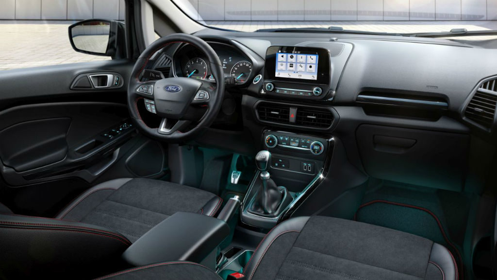 Η ανανέωση συνεχίζεται και στο εσωτερικό με τη νέα οθόνη αφής μεγέθους 8” και το σύστημα ενημέρωσης και ψυχαγωγίας SYNC 3, το οποίο συνδέεται με Android Auto και Apple CarPlay. Επιπλέον, προσφέρεται Cruise Control, κάμερα οπισθοπορείας και ηχοσύστημα της Bank & Olufsen. Η μεγάλη αλλαγή έρχεται στ μηχανικό τομέα, αφού πλέον το Ford EcoSport εξοπλίζεται με το σύστημα τετρακίνησης Intelligent AWD, το οποίο προσφέρει βελτιωμένη πρόσφυση και καλύτερο χειρισμό σε εκτός δρόμου διαδρομές.