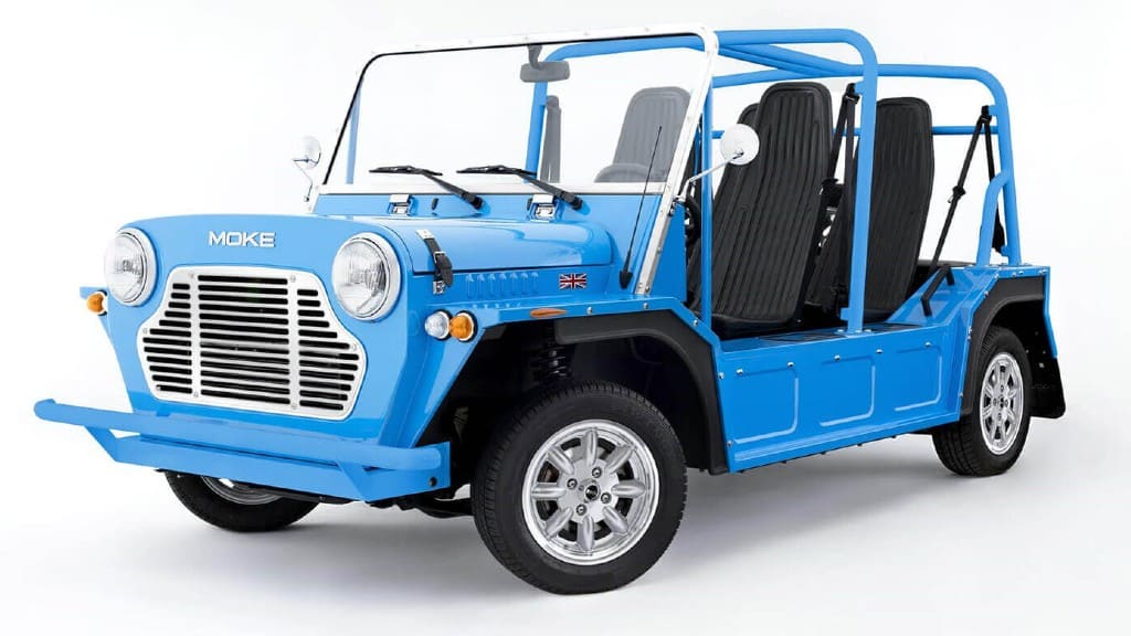 Τα χρόνια πέρασαν και το Moke εμφανίστηκε και πάλι, αλλά αυτή τη φορά με σύστημα ηλεκτροκίνησης. Το συνολικό μήκος φτάνει τα 3,55 μέτρα, το πλάτος τα 1,66 μέτρα και το ύψος τα 1,55 μέτρα, ενώ το μεταξόνιο φτάνει τα 2,25 μέτρα. Διατίθενται σε 8 χρώματα που είναι τα Sunlight Yellow, Sunset Orange, Wave Blue, Eucalyptus Green, Palm Green, Shell White, Standard Black και Whitsunday White.
