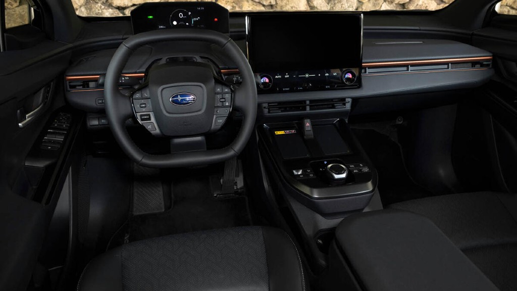 Στο εσωτερικό ξεχωρίζει αμέσως η ψηφιακή οθόνη αφής μεγέθους 14”, με το σύστημα ενημέρωσης και ψυχαγωγίας. Παράλληλα, υπάρχει και μια μικρότερη ψηφιακή οθόνη του πίνακα οργάνων. Επιπλέον, υπάρχουν δύο θέσεις επαγωγικής φόρτισης για smartphone, δύο θύρες USB-C, ασύρματη συνδεσιμότητα Apple CarPlay και Android Auto και το ηχοσύστημα της Harman Kardon με τα 11 ηχεία. Το δερμάτινο τριάκτινο τιμόνι με τα χειριστήρια και ο στρογγυλός επιλογέας ταχυτήτων δίνουν μια άλλη όψη από αυτά που έχουμε συνηθίσει στα μοντέλα της Subaru. Στο εξοπλισμό περιλαμβάνονται τα θερμαινόμενα καθίσματα, καθώς και το σύστημα στους υαλοκαθαριστήρες που απομακρύνει τον πάγο.