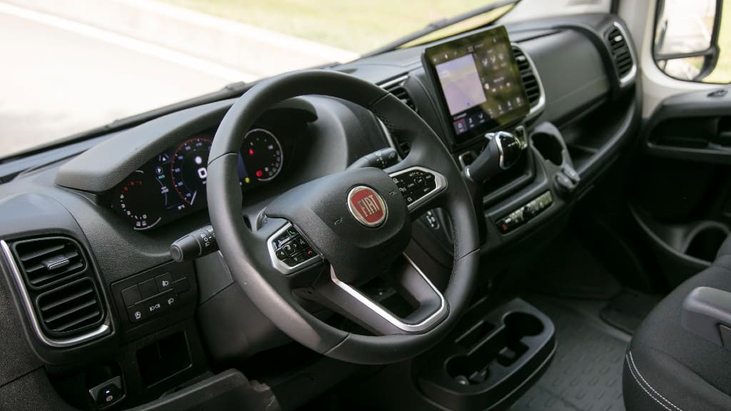 Η πραγματική όμως επανάσταση που φέρνει το νέο Ducato βρίσκεται στο εσωτερικό του. H είσοδος και εκκίνηση χωρίς κλειδί, το ηλεκτρικό χειρόφρενο και το ηλεκτρικό άνοιγμα της πόρτας του χώρου φόρτωσης αποτελούν πρακτικές λύσεις που κάνουν πολύ πιο εύκολη την καθημερινότητα του επαγγελματία. Αντίστοιχα η θέση του συνοδηγού με το σύστημα Eat-and-Work προσφέρει την πολυχρηστικότητα που απαιτούν οι έντονοι ρυθμοί εργασίας. Επιπλέον η θέση αυτόματης φόρτισης, οι θύρες USB-A και USB-C, αλλά και η παροχή 230V κάνει τη σύνδεση και φόρτιση των συσκευών εύκολη και ασφαλή.