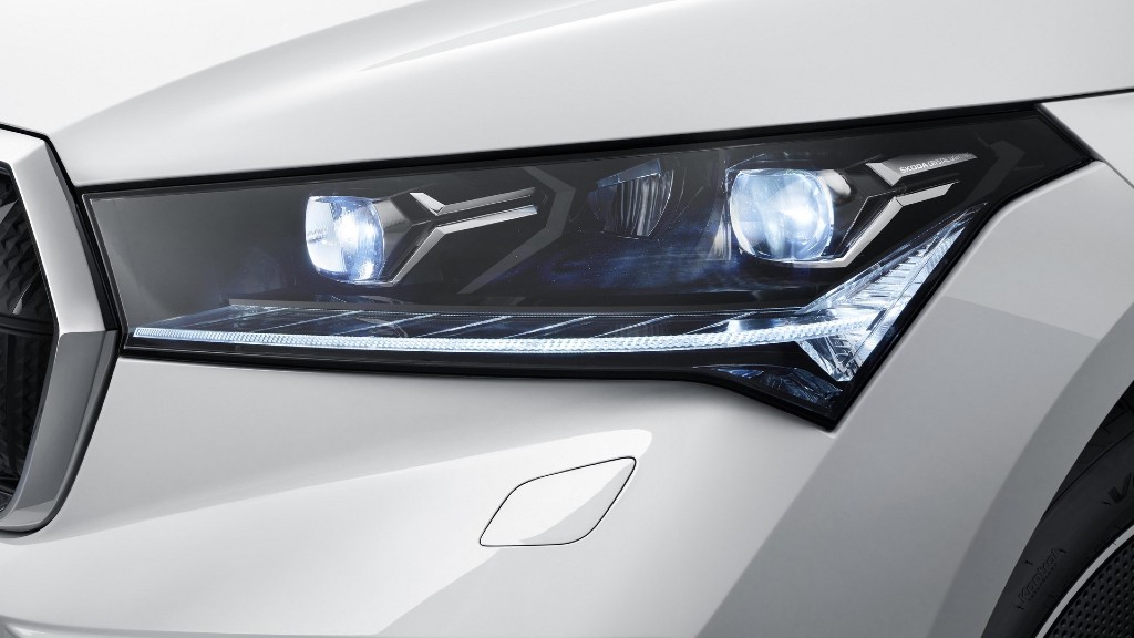 Στο πίσω μέρος δεσπόζουν και εδώ τα LED φωτιστικά σώματα που αποτελούνται από κρύσταλλα Βοημίας. Η αεροτομή στο τελείωμα της οροφής προσπαθεί να δώσει μια πιο εντυπωσιακή μορφή, ενώ πλέον όπως έχουμε συνηθίσει δεν υπάρχει το σήμα της τσέχικης εταιρείας, αλλά ολογράφως η λέξη Skoda. Η εξωτερική εμφάνιση ολοκληρώνεται με τις ζάντες αλουμινίου από 18” έως 21”, οι οποίες συνοδεύονται από ελαστικά χαμηλής αντίστασης κύλισης.