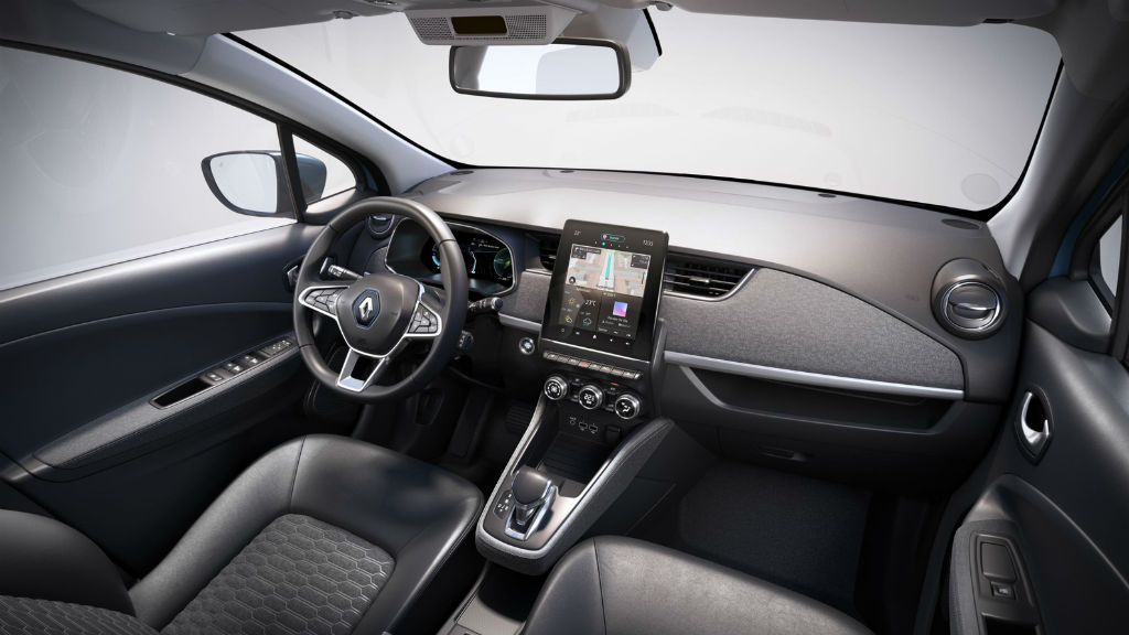 Το εσωτερικό δεν έχει να ζηλέψει σε τίποτα τα άλλα μοντέλα της γαλλικής φίρμας. Το Zoe διαθέτει μια ψηφιακή οθόνη για τον πίνακα οργάνων μεγέθους 10”, ενώ υπάρχει και η οθόνη αφής μεγέθους 9,3”, η οποία είναι ίδια με αυτή του Clio και προσφέρει το σύστημα ενημέρωσης και ψυχαγωγίας Easy Link. Το σύστημα μπορεί να εντοπίσει άμεσα τους σταθμούς φόρτισης στο δρόμο, έτσι ώστε το Zoe να μην μείνει ποτέ από ενέργεια.