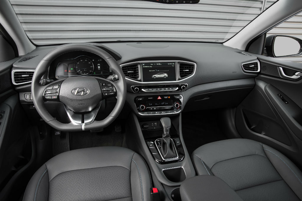 Αξιοσημείωτη διαφορά ανάμεσα στις τρεις εκδόσεις του Ioniq είναι ο περισσότερος χώρος ανάμεσα στα καθίσματα του οδηγού και του συνοδηγού που υπάρχει στο Ioniq Electric, αφού η ρύθμιση των καθισμάτων γίνεται μέσω κουμπιών, αφαιρώντας έτσι όλους τους γνωστούς χειροκίνητους μηχανισμούς που χρησιμοποιούνταν για αυτή τη δουλειά. Επιπλέον, η έκδοση Electric διαθέτει ηλεκτρονικό χειρόφρενο (EPB), γεγονός που προσθέτει χώρο στην κεντρική κονσόλα.