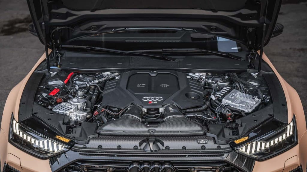 Το Audi RS 7 κάτω από το καπό κρύβει το V8 Twin-Turbo κινητήρα χωρητικότητας 4 λίτρων, με τη μέγιστη ισχύ πλέον να αγγίζει τους 1.000 ίππους, ενώ η μέγιστη ροπή φτάνει τα 117,2 κιλά. Για να επιτευχθεί το συγκεκριμένο αποτέλεσμα χρειάστηκαν νέα σφυρήλατα πιστόνια, ενισχυμένες μπιέλες, νέα Turbo, Carbon εισαγωγή, πρόσθετα ψυγεία λαδιού, μεγαλύτερα Intercooler και σύστημα έμμεσης έγχυσης νερού/αιθανόλης. Το 0-100 επιτυγχάνεται σε μόλις 3”, ενώ η τελική ταχύτητα αγγίζει τα 330 χλμ/ώρα.