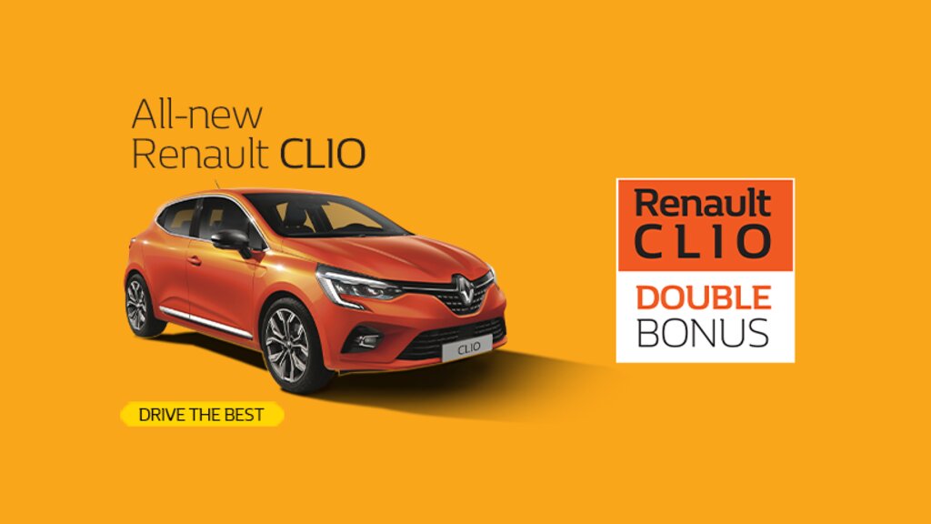 Τώρα, το νέο Renault Clio γίνεται ακόμη πιο ανταγωνιστικό, με το πρόγραμμα Clio Double Bonus και όφελος που φτάνει τα 1.500€. Πιο συγκεκριμένα, όποιος επιλέξει ένα καινούριο Renault Clio εξασφαλίζει επιδότηση ανταλλαγής, δωρεάν το μεταλλικό χρώμα, δωρεάν 5 χρόνια εργοστασιακή εγγύηση Renault, δωρεάν 3 χρόνια οδική βοήθεια και δωρεάν ασφάλιση για 6 μήνες.
