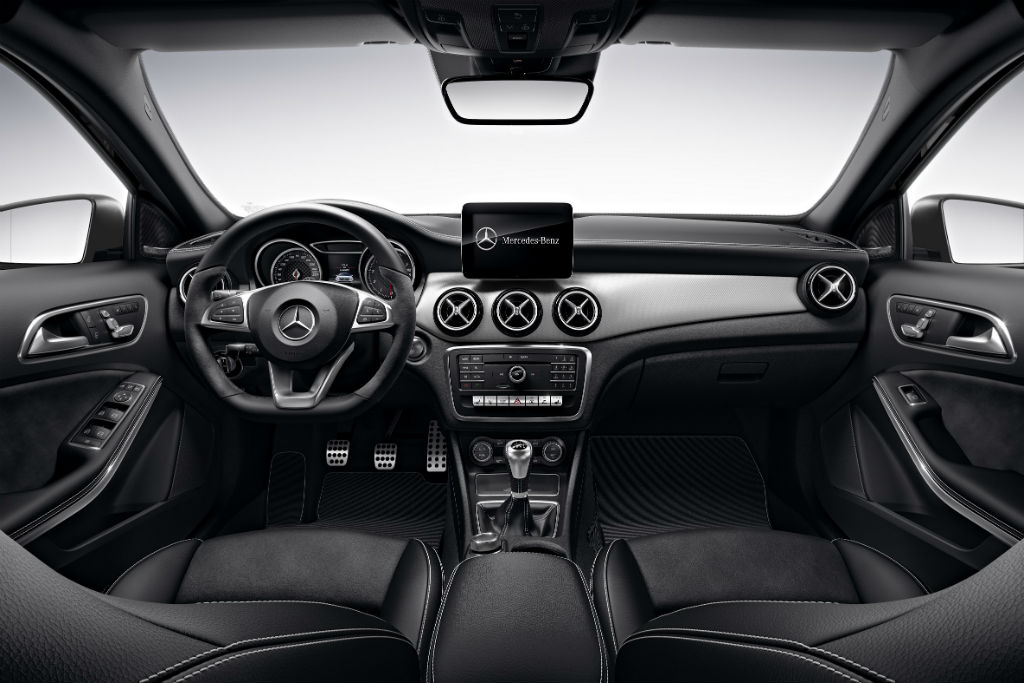 Εκτός όμως του λευκού χρώματος το αμάξι διατίθεται και σε μαύρο, γκρι και ασημί, ενώ υπάρχουν και ζάντες αλουμινίου μεγέθους 18” (19” για τη GLA), που κάνουν ακόμα πιο όμορφη την εξωτερική εμφάνιση. Εσωτερικά τα σπορ δερμάτινα καθίσματα, δίνουν μια άλλη αίσθηση, μαζί με το τριάκτινο πολυλειτουργικό τιμόνι. Ο χρωματισμός είναι μαύρος, ο οποίο σπάει με άσπρες λεπτομέρειες στο ταμπλό, τα καθίσματα, αλλά και το τιμόνι.