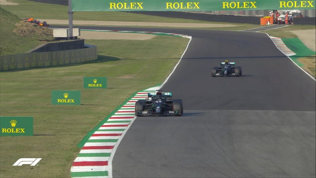 Ένας αγώνας γεμάτος απρόοπτα ήταν και ο δεύτερος επί ιταλικού εδάφους στην πίστα Mugello στην Tuscany. Ατυχήματα, Safety Car, δύο φορές κόκκινη σημαία και δύο επανεκκινήσεις επιφύλασσε το Grand Prix της Tuscany πριν φτάσουμε στο νικητή. Τελικά την καρό σημαία πήρε ο Lewis Hamilton φτάνοντας τις 90 στην καριέρα του, μένοντας μόλις μια πίσω από τον Michael Schumacher. Η Mercedes πανηγύρισε ένα ακόμη 1-2, με τον Valtteri Bottas να μένει στη δεύτερη θέση, ενώ το βάθρο συμπλήρωσε ο Alexander Albon, με τη Red Bull Racing.